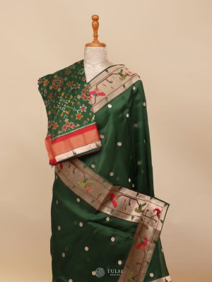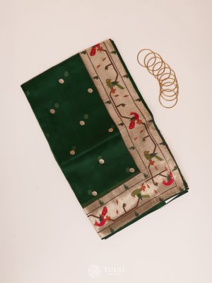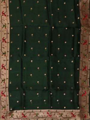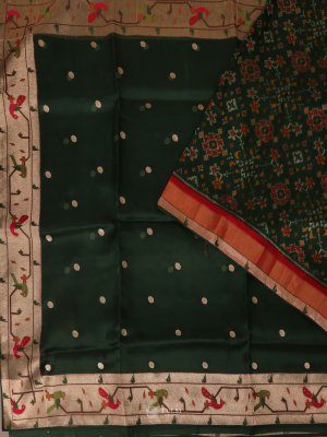 Emerald Green Organza Saree Paithani Border With Ikat Blouse