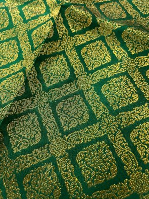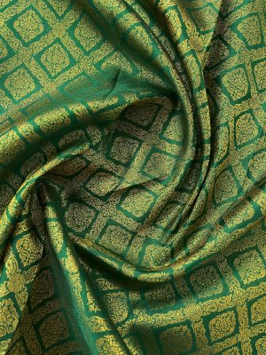 This handwoven green Kanjeevaram silk blouse is adorned with elaborate floral brocade in pure gold zari all over.