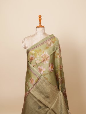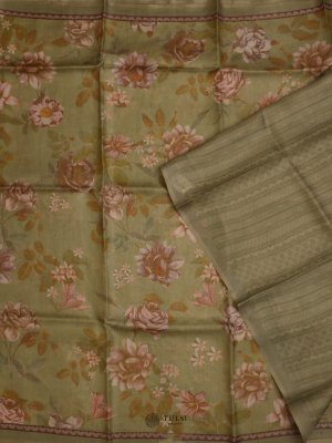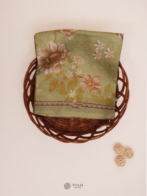 This beautiful organza silk saree features shades of Green and a floral printed pattern body with a self-woven zari border, which makes this saree perfect for every occasion.
