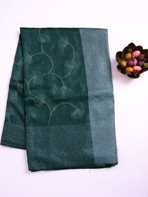 Light Green Tussar Silk Saree With Floral Embroidery