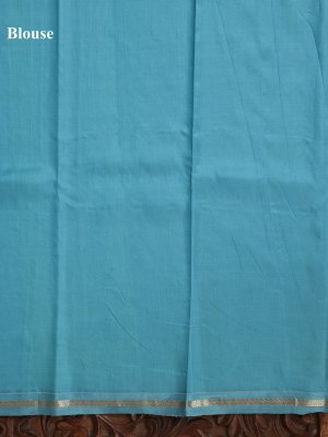 Light Blue Printed Kanjeevaram Silk Saree With Dark Blue Border