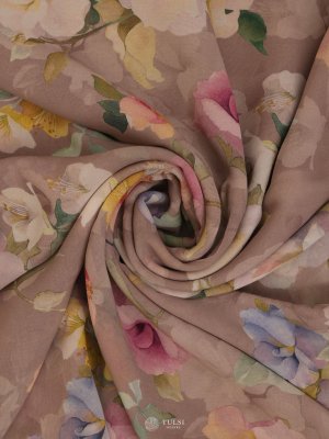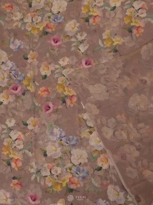Peach Floral Printed Georgette Silk Saree