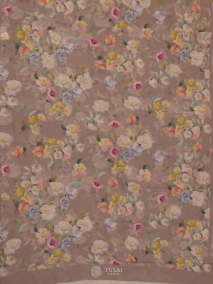 Off White Floral Printed Georgette Silk Saree
