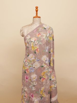 Light Pink Floral Printed Georgette Silk Saree