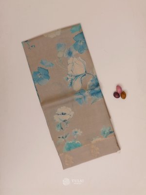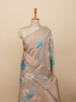 This Grey Tussar Silk Saree brings a serene elegance to your wardrobe with its soothing blue and white floral motifs. The subtle sheen of Tussar silk enhances its refined appeal, making it perfect for both daytime events and graceful evening occasions. Lightweight, sophisticated, and effortlessly stylish, it blends contemporary charm with traditional finesse.