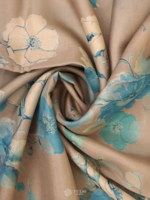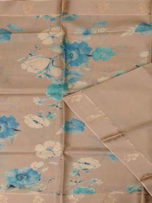 Light Brown Printed Tussar Silk Saree