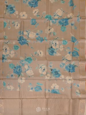 Beige Printed Tussar Silk Saree