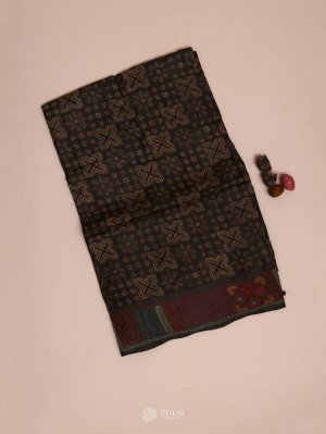 Black Tussar Silk Saree with Kantha Embroidery ( Komaniya )