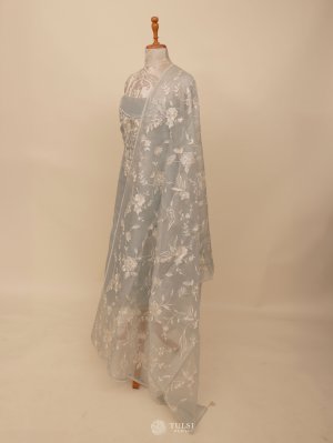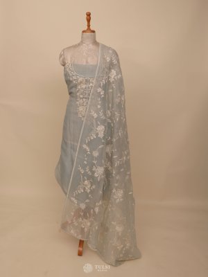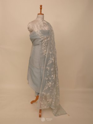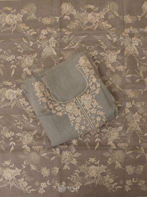 Greyish Blue Organza Salwar Material