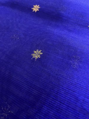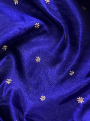 Deep Blue Chanderi Silk Blouse With Gold Zari Floral Motifs