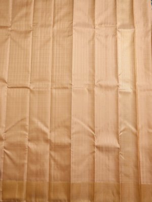 A khaki silk dhoti with intricate zari checks, paired with a matching vasthram, exudes subtle elegance. The standout 8 kol border brings traditional artistry to the forefront. Perfect for festive or ceremonial wear, this set is a blend of classic style and cultural finesse.