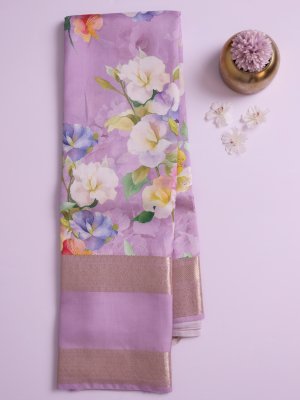 Lavander Printed Kanjeevaram Silk Saree
