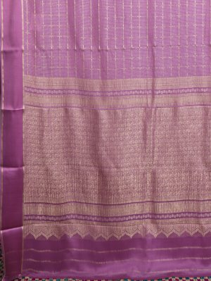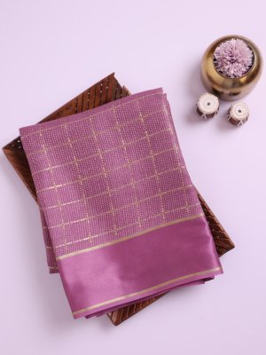A dreamy lavender Mysore silk saree that brings a fresh and calming aesthetic to your wardrobe. The fine checkered pattern adds structure, while the ornate border introduces a touch of grandeur. Lightweight and breathable, it ensures ease of movement without compromising on style. Perfect for daytime events or intimate celebrations, it offers a modern take on classic elegance.
