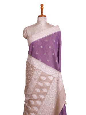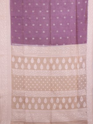 Lavender Tissue Munga Tussar Silk Saree with Beige Border