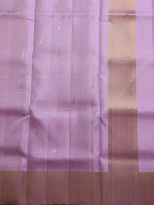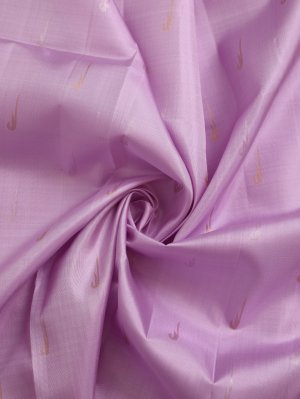 This Lavender Silk Dhoti and Vasthram feature the Meen Thoondil design on both the body and the gold self-Zari border, woven with shimmering gold and silver Zari. The intricate motifs add elegance and a regal charm, making it perfect for auspicious and festive occasions.