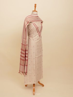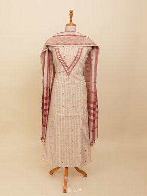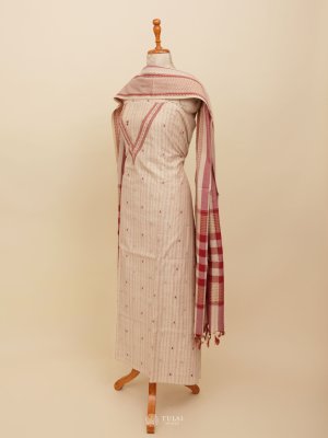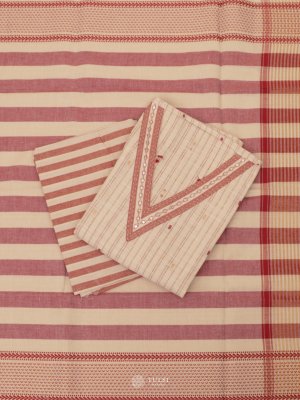 This elegant Light Beige Cotton Salwar Material, featuring light peach subtle stripes on the body for a touch of texture and charm. Crafted from breathable, soft cotton, this unstitched suit material ensures all-day comfort—perfect for casual wear, office use, or summer outings.