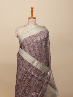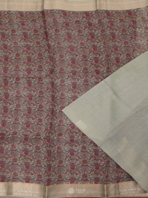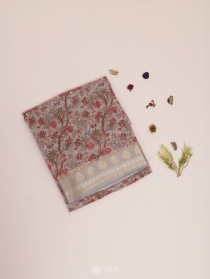 Greyish Blue Kora Silk Saree