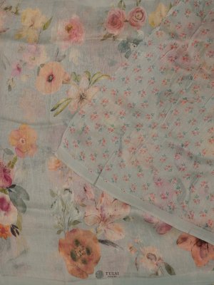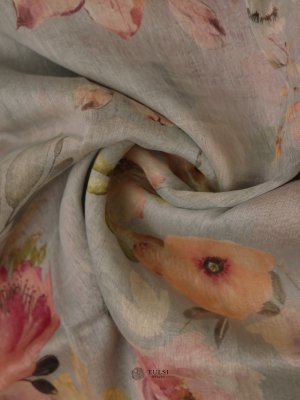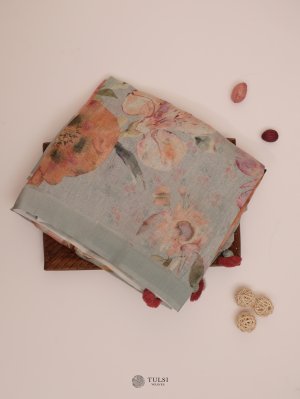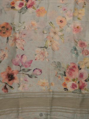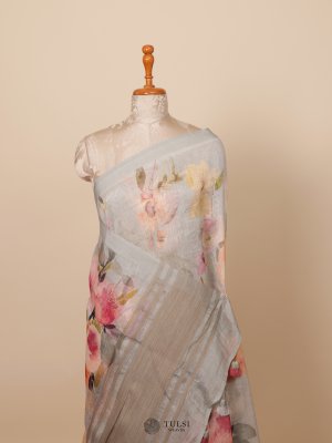 This Light Blue Floral Printed Linen Saree is ideal for any special event. Crafted from soft linen, it drapes gracefully and lively floral designs bring a hint of nature's charm.