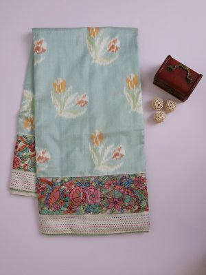 Light Bluish Green Patola Silk Saree with Shadow Embroidered Border