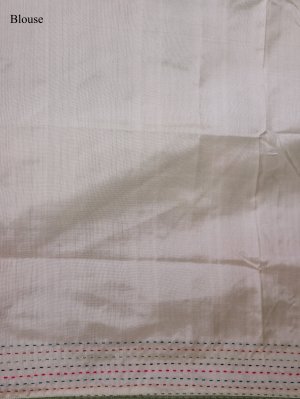 Light Green Kora Jamdani Silk Saree With Petite Point Embroidered Small Border