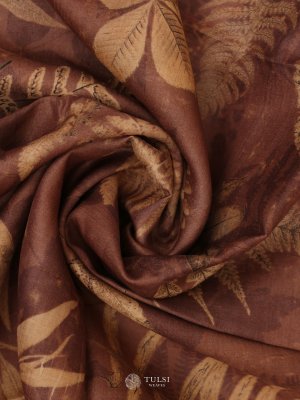 This Light Brown Printed Tussar Silk Saree comes in a rich Light Brown shade with soft eco prints across the body, adding a unique and stylish touch. The natural Tussar texture gives the saree a refined, classy feel, while the printed design keeps it modern and elegant. Finished with gloden borders, this saree is perfect for office wear, small gatherings, and graceful evening outings.