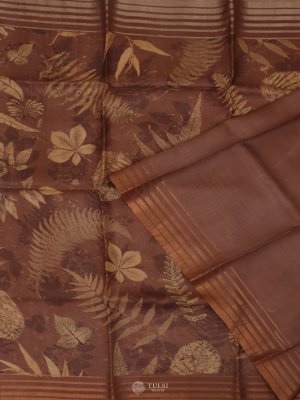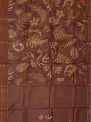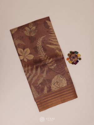Light Brown Printed Tussar Silk Saree