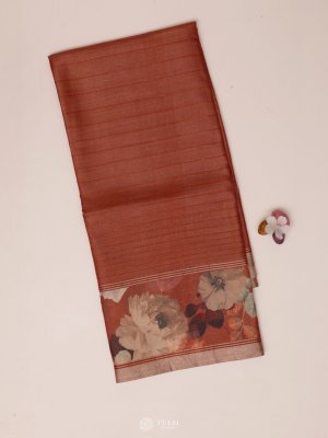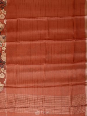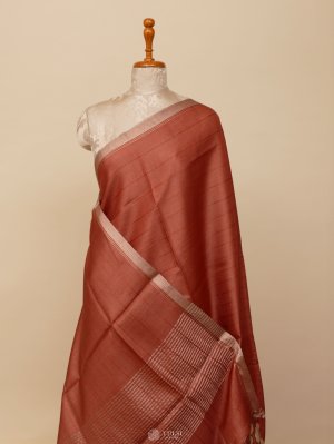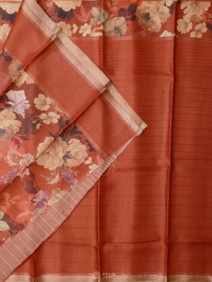 This Light Brown Tussar Silk Saree stands out with its beautifully detailed floral prints that flow gracefully across the border. The natural texture of Tussar silk gives it a soft sheen and fluid drape, making it perfect for festive gatherings, cultural events, and elegant daytime occasions.