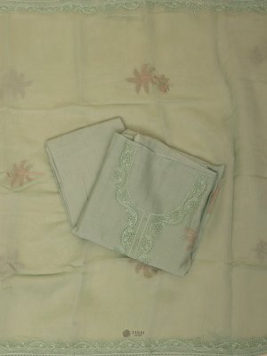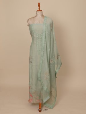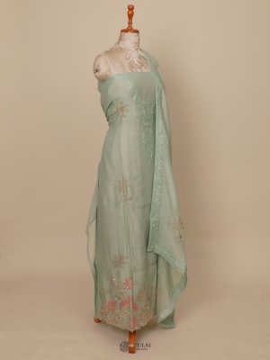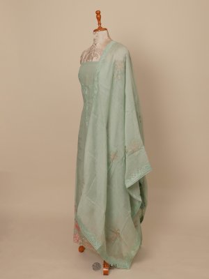 This Light Green Chanderi Salwar Material features intricate embroidery on the body, sheer fabric . Lightweight and graceful, it's ideal for both festive and everyday ethnic wear.