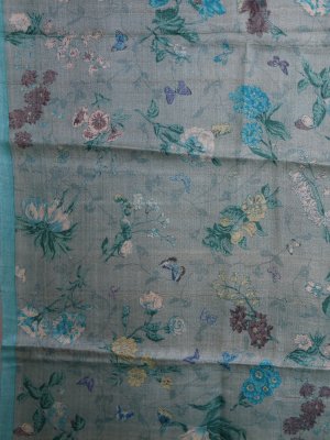 This dusty greenish-blue Tussar silk saree exudes a refreshing elegance with its delicate floral prints and serene seafoam hue. The fabric features the signature rich texture and natural sheen of Tussar, providing a sophisticated structure that drapes beautifully for any occasion. Vibrant botanical motifs in yellow and blue dance across the body, offering a modern, airy aesthetic that balances tradition with contemporary style. It is an ideal choice for daytime festivities or professional settings where you want to project a sense of understated luxury and grace.