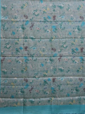 Grey Printed Tussar Silk Saree