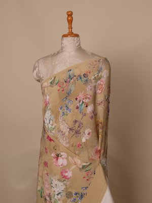 Floral Printed Beige Crepe Saree