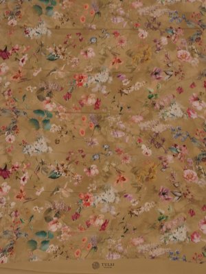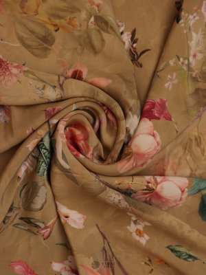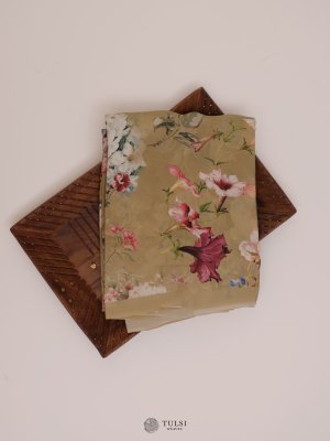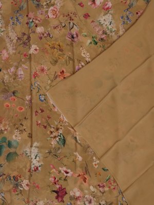 This Light khaki Floral Printed Crepe Silk Saree is a perfect blend of grace and style. Featuring vivid floral prints on a smooth crepe silk fabric, it comes without a border, giving it a seamless, contemporary look. Lightweight and easy to drape, it’s ideal for both casual and festive wear.