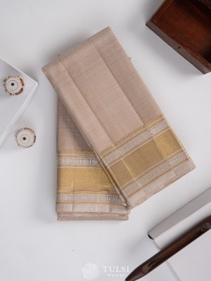 Light Beige Silk Dhoti With Zari Border