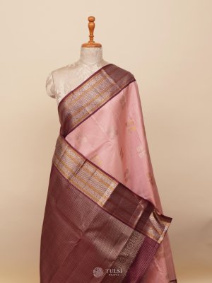 Pink Kanjeevaram Silk Saree with Self Zari Border