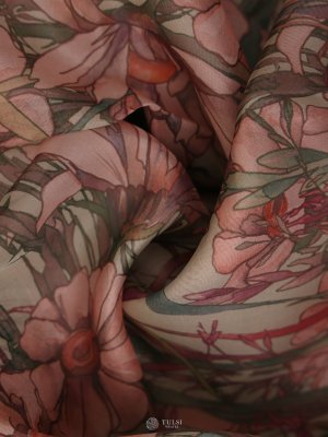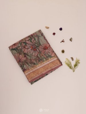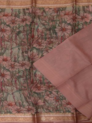 Peach Floral Printed Organza Silk Saree