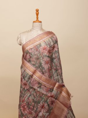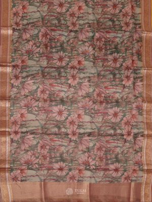 Light Pastel Green Floral Printed Organza Silk Saree