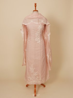 This salwar material set is made from soft and lightweight Kota fabric in a beautiful Light Peach shade. The fabric is breathable and comfortable, perfect for everyday wear or casual occasions.