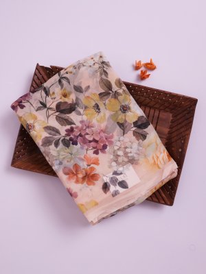 This Light Peach Printed Chiffon Saree combines classic floral motifs with a modern fabric finish for a truly versatile wardrobe staple. The breathable weave keeps you cool and comfortable while maintaining a high-end, fashionable look throughout the day. Discover the joy of wearing a saree that is as practical as it is beautiful.