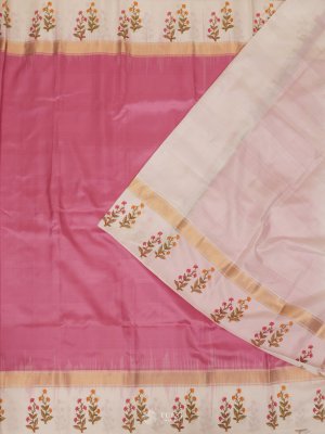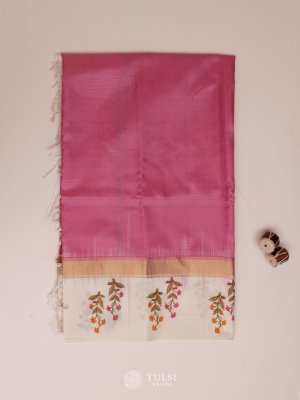 Rose Pink soft Silk Saree with yellow border