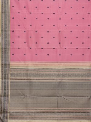 Light Pink Kanjeevaram Pattu Pettu Silk Saree With Cream Border