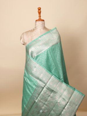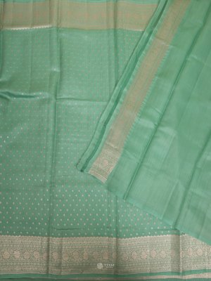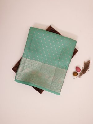This Light Sea Green Chaniya Silk Saree featuring a soft, lustrous finish and a striking contrast border. The Light Sea Green body is perfectly complemented by the richly woven border, adding a traditional yet stylish touch.