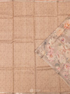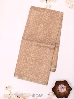 This beautiful Light Taupe Tussar Silk Saree combines rich color and traditional design. The saree is decorated with a Bandhini print, a classic tie-dye pattern that adds a unique touch of artistry.