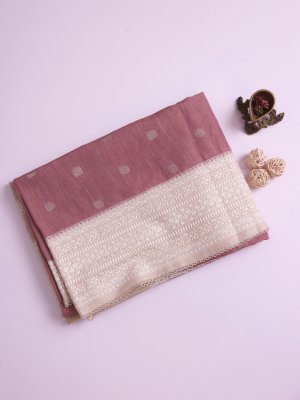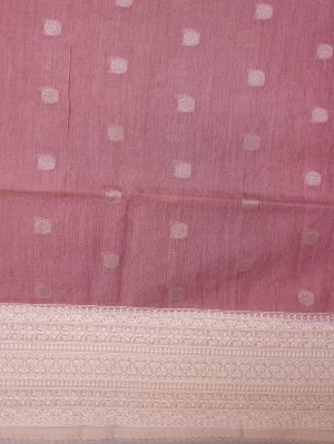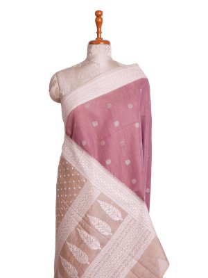Lilac Pink Tissue Munga Tussar Silk Saree with Beige Border