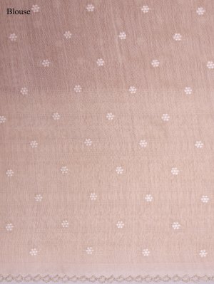 This Lilac Pink Tissue Munga Tussar Silk saree balances a crisp, breathable drape with a radiant metallic glow that flows across the body. The beige border lends a firm, architectural edge through dense cream thread work, culminating in a pallu adorned with layered botanical motifs and neat hand-knotted tassels. Lustrous silver-toned accents punctuate the lilac body, creating a luminous shimmer perfect for wedding events and grand celebrations.