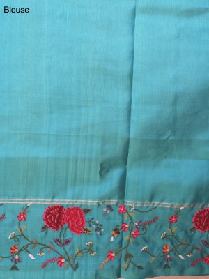 Pastel Bluish Green Patola Silk Saree With Kani Hand Embroidered Border