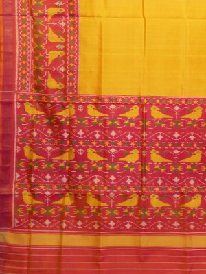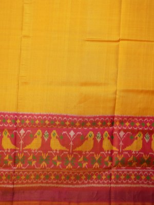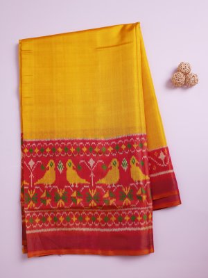Mango Yellow Patola Silk Saree with Pink Border