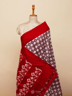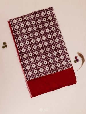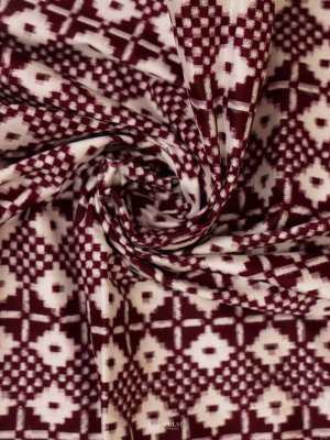 This Maroon Ikat Silk Saree embodies a blend of elegance and simplicity. Crafted from fine silk, it offers a smooth texture and graceful fall, making it perfect for both everyday wear and special occasions. The subtle White tone adds a refined charm, while the traditional ikat weaving reflects timeless craftsmanship.