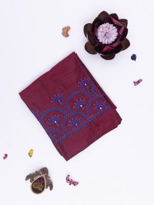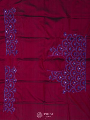 Dark Magenta Tussar Blouse With Floral Embroidery
