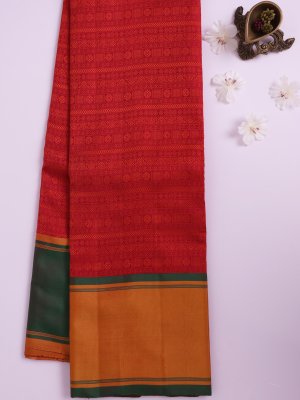 Nagapazham Kanjeevaram Silk Saree with Pinkish Orange Border