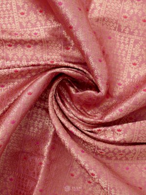This Mauve Pink Banaras Silk Blouse showcases delicately woven zari motifs highlighted with dainty pink accents for an effortlessly regal charm. Its lustrous texture and heritage craftsmanship make it an elegant choice for festive wear and refined everyday styling.